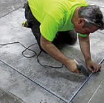 - B. 글루 건으로 콘크리트에 strip을 접착시키고 에폭시 terrazzo 시공 전 콘크리트에 strip을 좀 더 단단히 부착시키기 위해 에폭시를 strip의 바닥 면 테두리에 조금씩 흘려주고 양생.