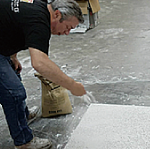 - B. 바닥이 완전하게 건조된 이후, 에폭시 자재가 매우 밀실하게 주입이 되도록 매우 평평한 edge trowel로 작업을 진행.