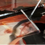 - 막대에 연결된 squeegee (고무헤라)로 SHINE - METAL EPOXY 자재를 균일한 두께로 코팅이 되어야 하는 구간에 펼쳐 줍니다.
