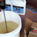 -SHINE - METAL EPOXY 자재 “A(주제)”에 정해진 양만큼의 지정된 색상의 Metal 안료를 넣고 3-5분간 먼저 혼합 후 공기가 빠져나갈 수 있도록 혼합된 자재를 최소 5-10분간 놓아 둡니다. 안료가 완전히 혼합되게 하기 위해 하루 전 미리 A제와 안료를 혼합시킵니다.