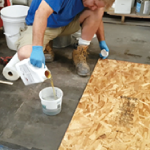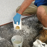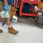 -바닥이 충분히 양생된 후 스크래퍼 등으로 바닥을 긁어 부착되지 않은 flake들을 완전히 제거합니다.