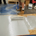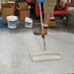 -자재를 바닥에 붓고 nap roller 등으로 바닥에 자재를 골고루 발라줍니다.
